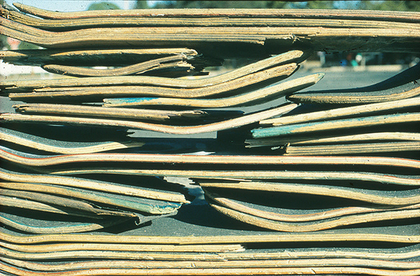 The idea for the design came about when I discovered an old photo I took of some of my broken skateboards round about 2000 or 2001 when I was a still a student at the University of Pretoria. I ended up using this photo for a business card design that Jamie (the owner of Dope Industries) saw, and that developed into doing a t-shirt design for his label. We stacked some broken boards he had lying around his work shop, some were broken into smaller pieces to make the stack more balanced - visually and literally.